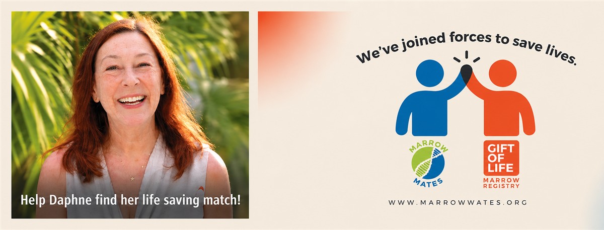 I am sharing a personal video and a link to a news story about me.  I’ve also included a link to my Marrow Mates Gift of Life Donor Circle, where you can sign up to join the global stem cell registry and see if you are my match.  All it takes is to swab the inside of your cheek with a cotton swab.  When you register, Marrow Mates will send you the swab kit.  That’s all it takes!